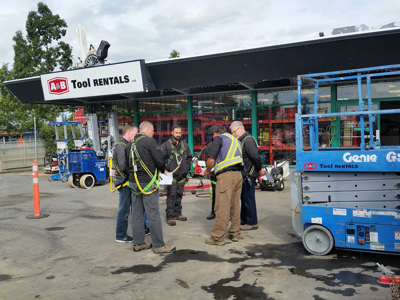 At A&B Tool Rentals, we offer an Aerial Training Program for all types of aerial work platforms. With smaller class sizes, it allows for more ‘hands on’ practice to ensure you and our trainer are comfortable operating the equipment safely. Classes with more than 6 (to a max of 12) students will have 2 instructors to ensure you still get plenty of hands on time.